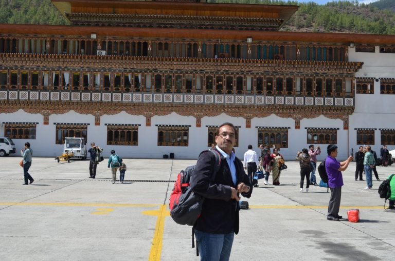 Upon landing at Paro International Airport, a breath of fresh air welcomed us, accompanied by intricate local craftsmanship evident in the airport’s architecture. Passengers, captivated by the scenic beauty, couldn’t resist capturing the moment with photographs. The journey from Paro to Thimphu, spanning around an hour’s drive, unveiled the splendour of Bhutan’s capital city. Our accommodation and conference arrangements were hosted at the luxurious Taj Tashi Hotel, known for its exceptional quality albeit at a premium cost.